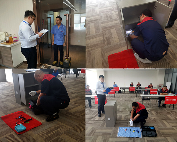 入戶維修場景模擬演練,考核選手從敲門禮貌、詢問業主、征得同意后穿鞋套到入戶維修等一系列維修流程。