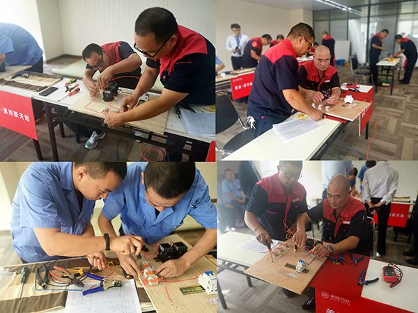 工程是項技術活,技術活不僅僅考量速度,在強電技術考核現場,各參賽隊有條不紊地進行各道工序,裁剪、連接、旋螺....看似簡單,這里面的門道可不小。