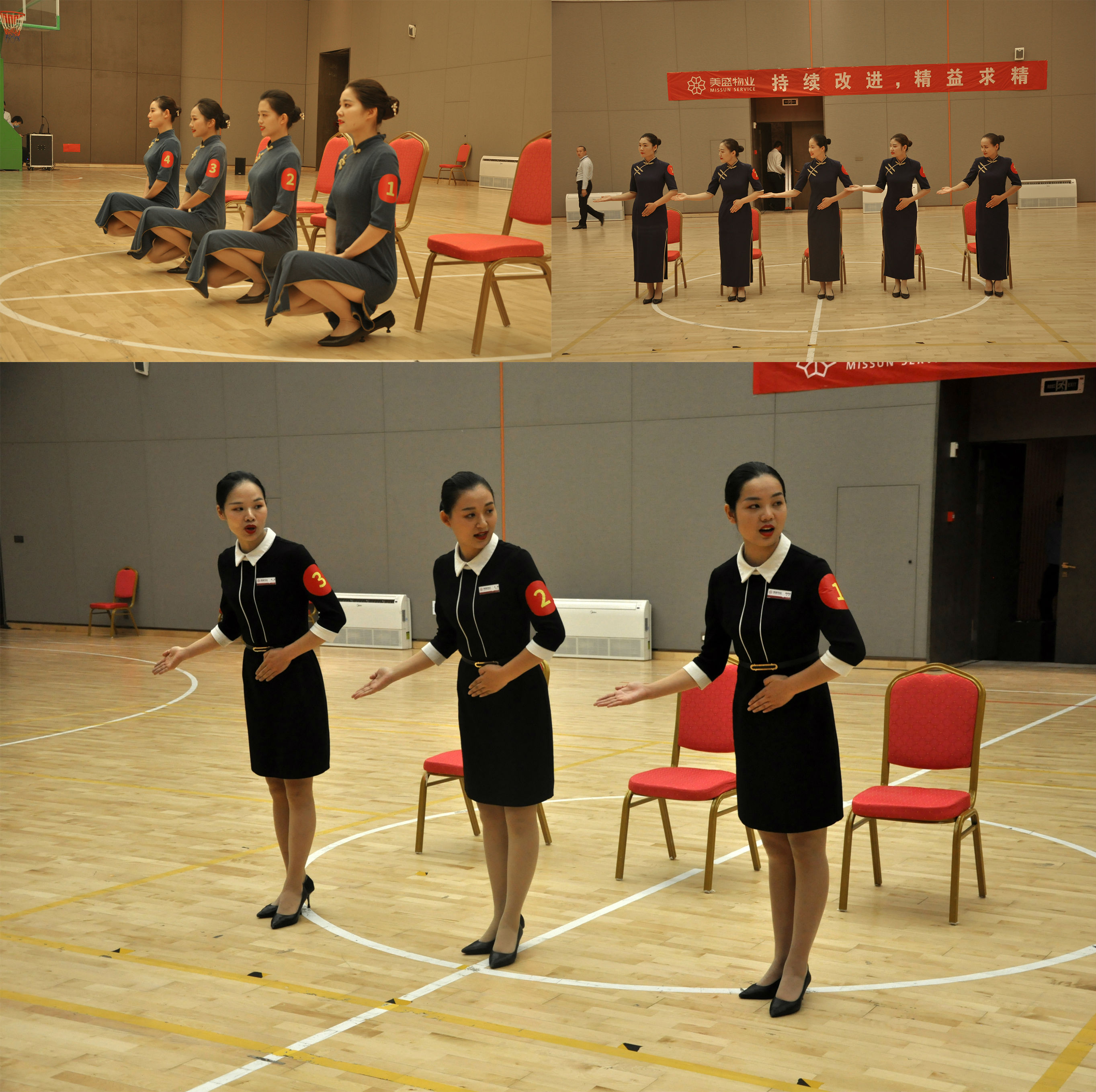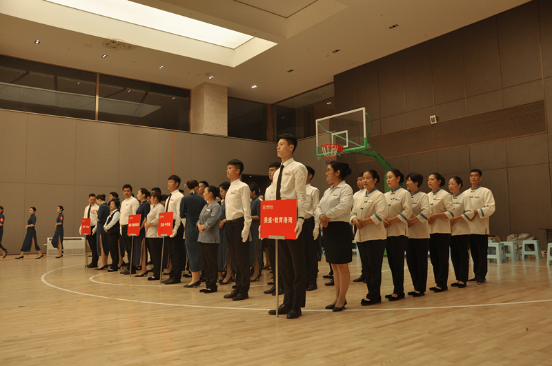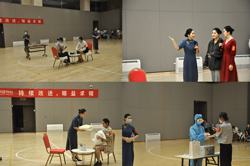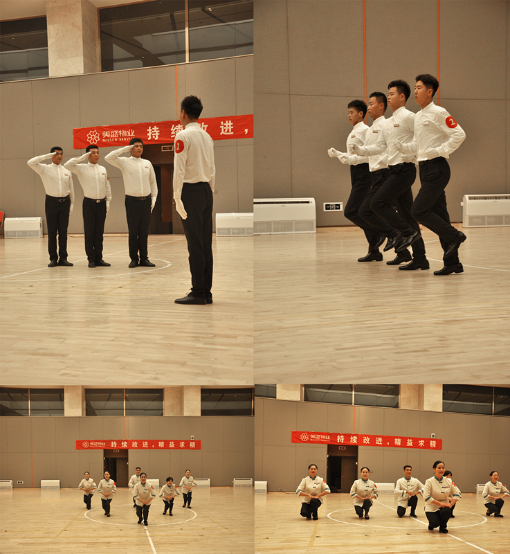良好的形象塑造,是為更好的日常物業(yè)客戶服務(wù)工作。5個(gè)項(xiàng)目代表隊(duì)通過走、站、坐、蹲、指引等動作展示團(tuán)隊(duì)風(fēng)采。