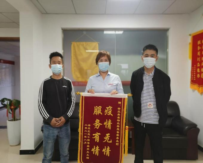 扛過鄭州最艱難的時期,一面遲來的錦旗,滿載沉甸甸的榮譽來到徐莊物業(yè)服務(wù)中心,沒有過多華麗的語言,只有兩行大字“疫情無情,服務(wù)有情”。管家李森莉這么久的默默付出,得到業(yè)戶由衷的認可,作為一名物業(yè)人,被日常這碎了一地雞毛事務(wù)圍繞的她,這一刻一定是幸福的。業(yè)戶的理解和認可,彌足珍貴。