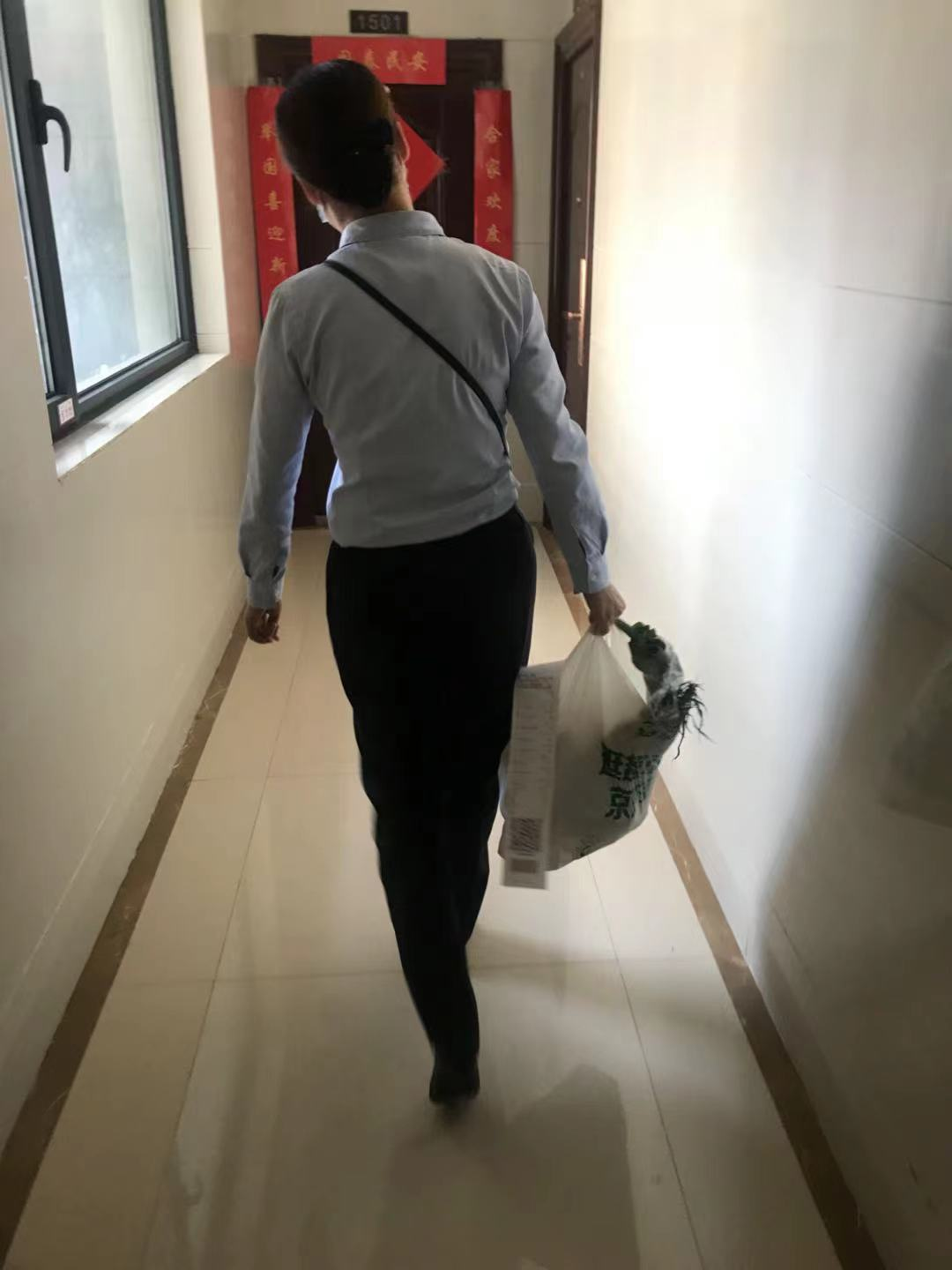 一個月前,徐莊北苑一租戶電話至服務(wù)中心告知自己到過中高風(fēng)險區(qū),管家李森莉第一時間聯(lián)系村委相關(guān)人員一同將此事報備至轄區(qū)街道辦事處。上級部門了解具體情況后,決定對此戶進行居家隔離。大家懸著的心終于可以稍稍平靜一下。但是隔離戶的生活品質(zhì)怎么保障呢?誰去送隔離戶需要的生活物資呢?一時眾說紛紜,無人回應(yīng),各有各的考慮在這個時候都可以理解。而李森莉,默默的聯(lián)系業(yè)戶,安撫業(yè)戶的情緒,了解業(yè)戶生活所需。
